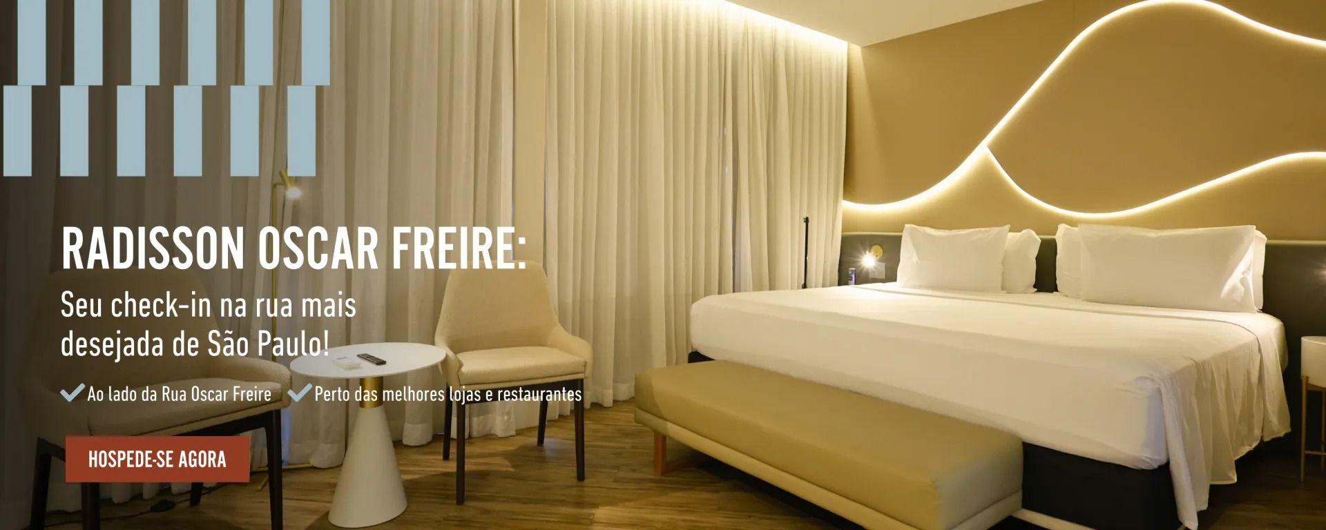 Ideal para quem busca conforto, estilo e mobilidade, o hotel Radisson oferece uma estadia completa. Próximo à Estação Oscar Freire do metrô, ao Hospital das Clínicas, ao Incor e a centros médicos de referência, ele também está cercado por lojas de grife, restaurantes premiados, galerias de arte, cafés charmosos e pontos culturais, como o MASP e o MIS (Museu da Imagem e do Som).