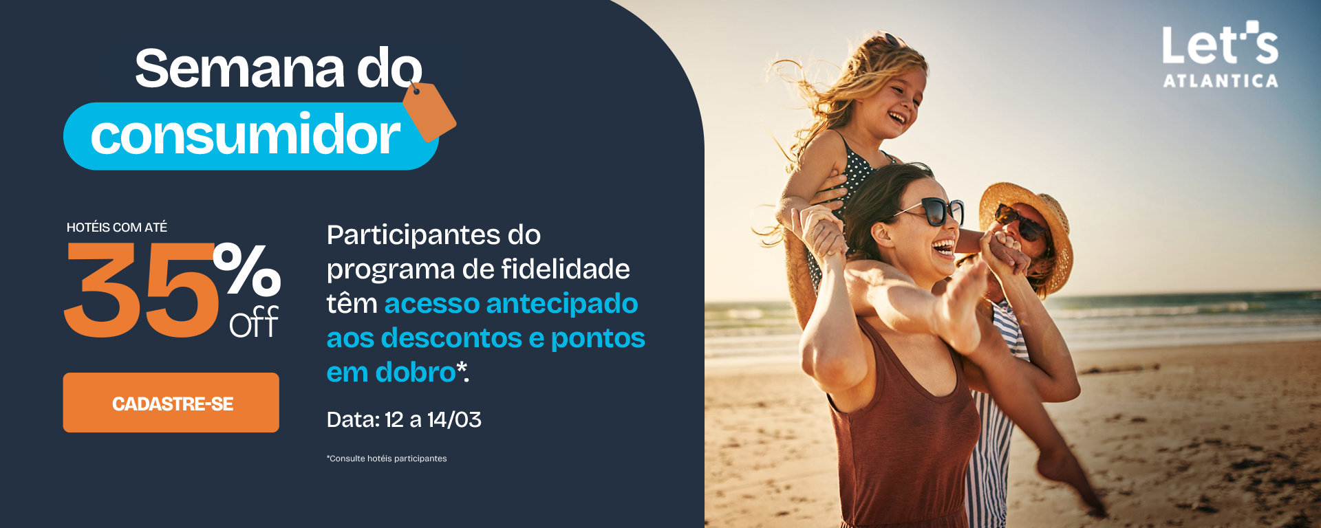 O Let's Atlantica é o site de vendas oficial e reúne mais de 195 hotéis e residenciais em mais de 75 destinos pelo Brasil.